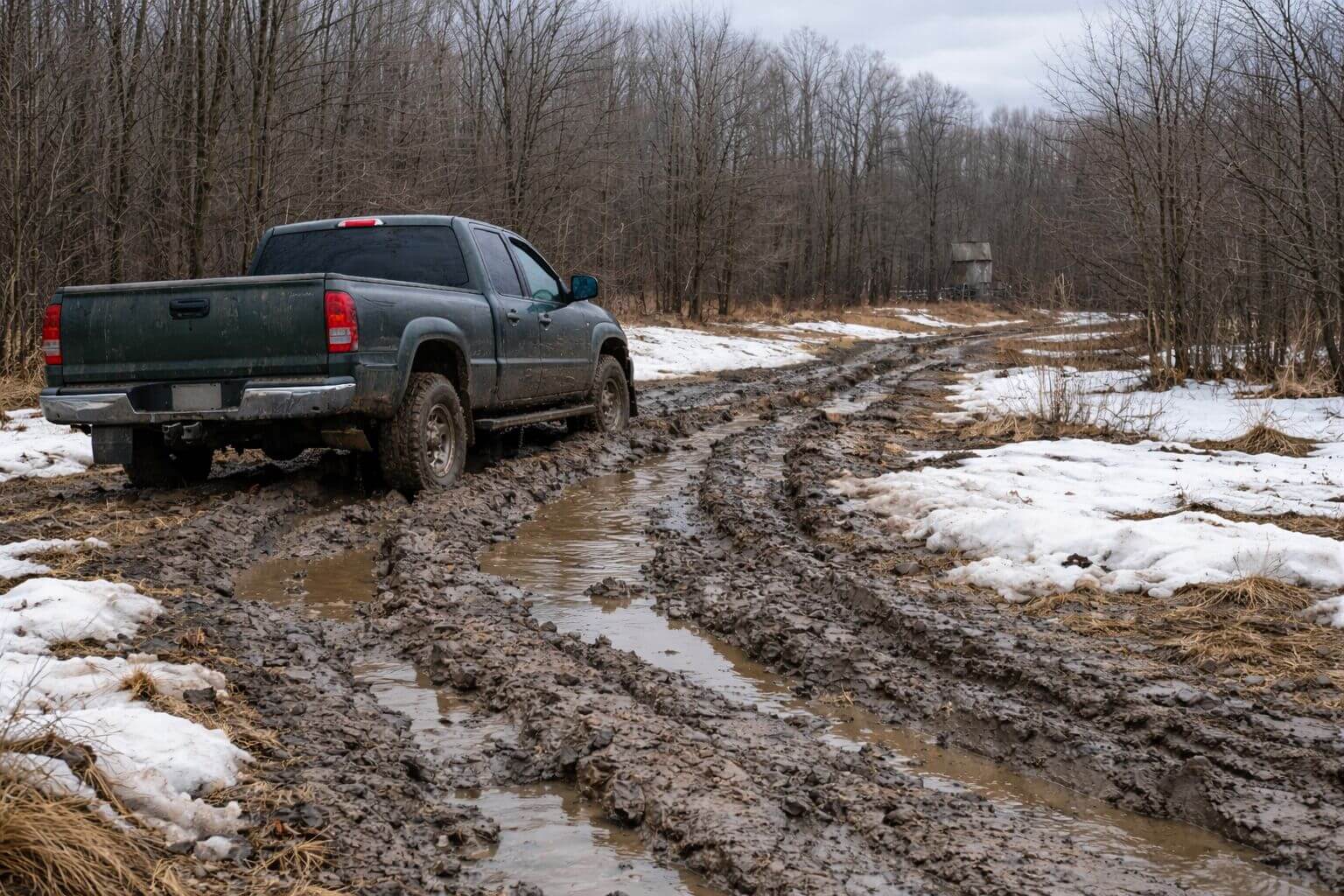 In Michigan, mud season is the great truth serum. A two-track can look fine when frozen, then become a axle-eating sponge as frost comes out. Michigan county road agencies even manage seasonal weight restrictions (“frost laws”) because late-winter thaw weakens roadbeds.